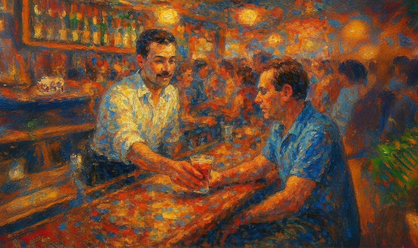 I watch him at the bar station, his hands measured and precise. He builds the drink with care, pouring, squeezing citrus, using all the motions I expected the first time. My irritation simmers, still hot but contained. Maybe this man actually knows what he’s doing.